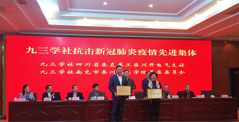 12月20日,在九三學(xué)社四川省第八屆委員會第七次全體(擴(kuò)大)會議上,九三學(xué)社四川省委頒發(fā)了九三學(xué)社中央委員會表彰的抗擊新冠肺炎疫情先進(jìn)集體及先進(jìn)個人榮譽(yù)牌匾,九三學(xué)社省直工委川開電氣支社榮獲社中央“九三學(xué)社抗擊新冠肺炎疫情先進(jìn)集體”榮譽(yù)稱號。
