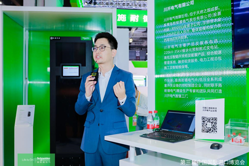 ?????? 川開電氣攜手戰(zhàn)略合作伙伴施耐德電氣共同亮相第三屆中國國際進口博覽會,共同推進數(shù)字化建設(shè),探索數(shù)字化高效運營管理模式。