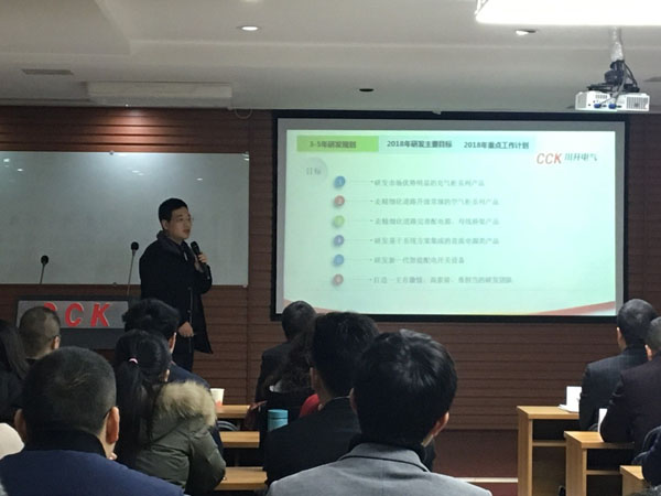 憶往昔崢嶸歲月,川開電氣副董事長袁會云在會議開始后,首先與大家共同回顧了2017年公司各項目標(biāo)指標(biāo)完成情況。在2017年度中我們在信息化建設(shè)、與集團的交流融合以及合同履約管理、精益生產(chǎn)推廣、員工培訓(xùn)提升等方面取得一定成績。但工作中仍然存在不足,比如創(chuàng)新意識還不夠,產(chǎn)品、研發(fā)、生產(chǎn)、市場、管理等工作缺乏前瞻性,比較默守陳規(guī);目標(biāo)分解和引導(dǎo)不足;成本意識還需要提高及SAP上線還需要加強培訓(xùn)等方面。