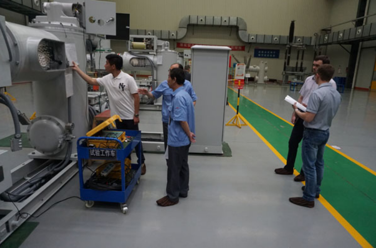 審查期間,俄電網(wǎng)專家對公司GIS生產(chǎn)現(xiàn)場進行了實地考察、核對,從物料管理、出入庫流程、生產(chǎn)設(shè)施、車間環(huán)境、檢測設(shè)施、檢查記錄、狀態(tài)標(biāo)識管理、過程裝配的作業(yè)指導(dǎo)書、自檢記錄卡、實物質(zhì)量形成等全過程的控制進行對標(biāo),同時還對技術(shù)、檢測/試驗人員進行了標(biāo)準(zhǔn)、試驗規(guī)范、方法的提問,并抽查了1個間隔GIS的出廠試驗。對技術(shù)文件、企業(yè)相關(guān)資質(zhì)文件、GIS國內(nèi)運行情況和管理流程的運行情況進行全面審查。