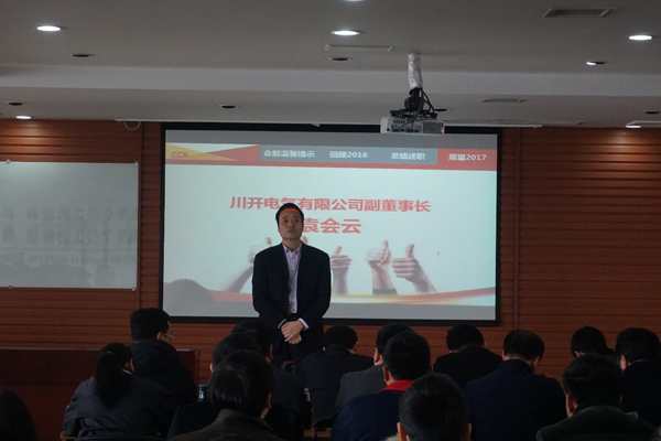 2017年1月7日上午8時(shí),川開電氣有限公司2016年度年終總結(jié)暨述職大會(huì)在六樓會(huì)議室召開。本次述職大會(huì)旨在對各部門2016年工作進(jìn)行全面盤點(diǎn)及反思,并對2017年的工作進(jìn)行更好的安排部署,同時(shí)也為各部門管理人員提供一個(gè)展示自己、互相學(xué)習(xí)的平臺。
