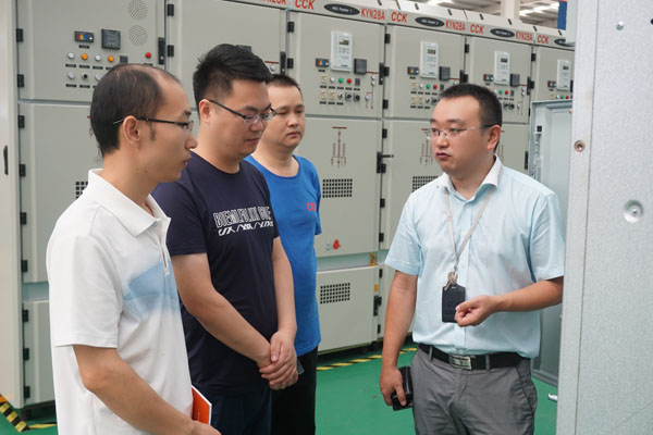 隨后在總經(jīng)理助理?xiàng)罱艿呐阃瑤ьI(lǐng)下,考察團(tuán)隊(duì)一行來(lái)到我公司生產(chǎn)現(xiàn)場(chǎng)參觀。當(dāng)看到一排排精致的開(kāi)關(guān)柜整齊的呈現(xiàn)在眼前,各工序操作人員有條不紊、配合默契的工作,大家紛紛豎起了大拇指??偨?jīng)理助理?xiàng)罱軐?duì)我公司產(chǎn)品特性及優(yōu)勢(shì)做了詳細(xì)介紹,李總一行充分肯定了我公司近年來(lái)在輸配電成套設(shè)備研發(fā)、制作、制造、銷(xiāo)售、安裝、技術(shù)咨詢(xún)等方面取得的成績(jī),并對(duì)我公司自主研發(fā)的新產(chǎn)品“110kV城市中心模塊化智能箱式變電站”給予了高度贊賞。同時(shí)就今后雙方友好合作,推進(jìn)雙方企業(yè)更好更快的發(fā)展進(jìn)行了深入探討。