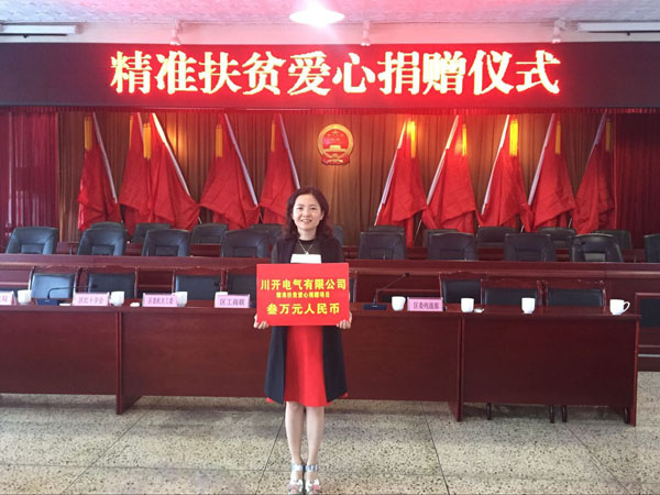 川開電氣有限公司作為雙流區(qū)企業(yè)代表參與了此次愛心捐贈儀式,并為需要幫扶的貧困家庭捐助了三萬元愛心善款。川開電氣始終踐行為社會貢獻自己的力量,履行社會責任。