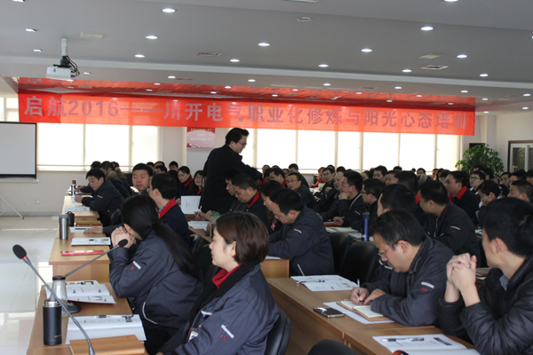 為進(jìn)一步提升管理團(tuán)隊職業(yè)素養(yǎng),增強職業(yè)化能力,改善職業(yè)化行為,提高團(tuán)隊執(zhí)行力、凝聚力和創(chuàng)新力,2月20日,川開電氣有限公司迎來了2016開門紅利——職業(yè)化修煉與陽光心態(tài)培訓(xùn)。公司中高基層管理和骨干共132人參加了此次培訓(xùn)。