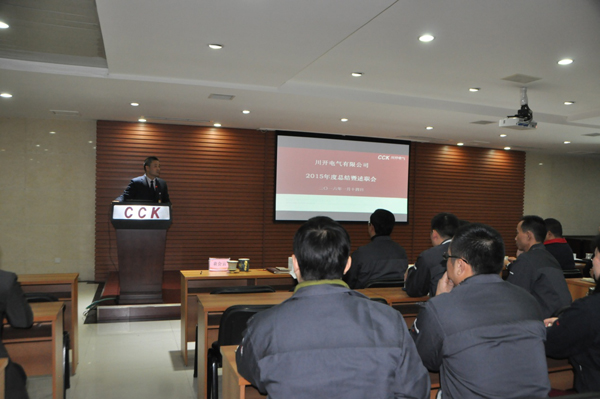 2016年1月14日,川開(kāi)電氣有限公司2015年度總結(jié)暨述職會(huì)在六樓會(huì)議室正式召開(kāi)。一年一度的年終總結(jié)大會(huì),旨在總結(jié)2015年工作中的亮點(diǎn),反思不足,對(duì)新一年的工作做出規(guī)劃和建設(shè)。
