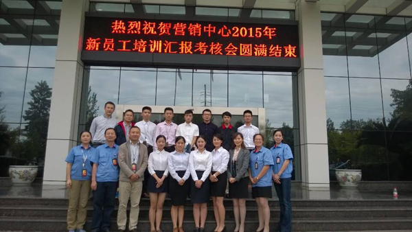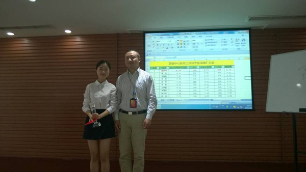 為更好評價該11名新員工在三個月培訓(xùn)期間的學習情況,全方位考核其記憶能力、演說能力、應(yīng)變能力和臨場發(fā)揮能力等,公司于9月24日下午13:30在六樓會議室舉辦了營銷中心新員工匯報考核會,考核嘉賓由總經(jīng)理李軍,副總經(jīng)理邢志剛、楊莉、岳宏,營銷副總監(jiān)李桂英,市場部部長劉玉榮以及人力資源部部長裴曉霜共同擔任??己藘?nèi)容包括知識掌握情況、語言表達流暢性、思維邏輯性、形象氣質(zhì)、PPT呈現(xiàn)效果和匯報時間等。根據(jù)此次考核成績和前三次考核平均成績,崔羅丹獲得了2015年營銷中心最佳新人獎榮譽。