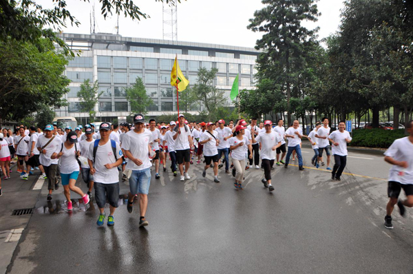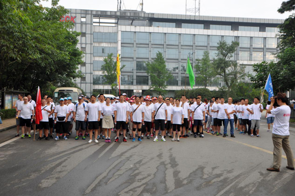 上午7點整,各公司參賽隊伍準時到達園區(qū)集結,在后勤人員的協(xié)助下有條不紊的進行出發(fā)前的各項準備。本次共有14支隊伍參賽,每支隊伍由不低于3位女士的10人組成,其中川開電氣5支參賽隊。7點30分,隨著集團工會主席李懷玉一聲令下,140余人組成的隊伍浩浩蕩蕩的沖出起跑線,近15km的戶外徒步正式拉開了帷幕。