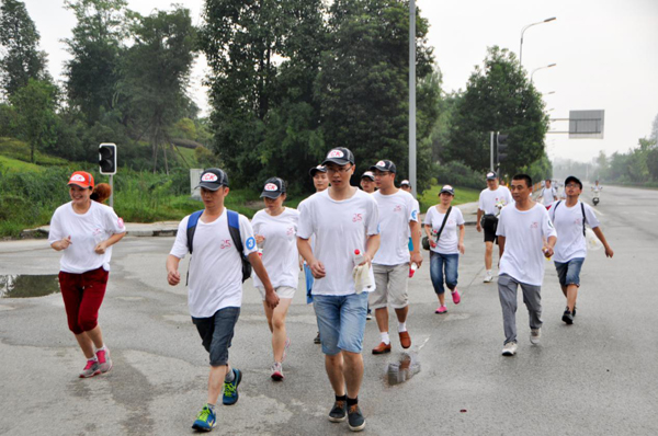 在華陽通往永安的路途上,川開集團的各支隊伍組成了一道亮麗的風景線,大家按照規(guī)定路線,朝著既定目標奮力前行。川開電氣的5支參賽隊,無論是有徒步經驗的2隊3隊,還是由80、90后組成的青春活力5隊,亦或者是由三箱事業(yè)部生產一線員工組成的7隊,又或是老中青混合而成的6隊,大家都邁著堅實有力的步伐,揮汗如雨,健步如飛。一聲聲最簡單的“加油,堅持”彰顯出川開人“不拋棄、不放棄”的競技精神,一個個最樸實的攙扶動作詮釋出川開人“友善、感恩、互助、齊心”的和諧氛圍。