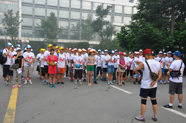 2014年8月2日上午6點(diǎn)50左右,活動(dòng)正式啟幕。培訓(xùn)班各小組學(xué)員近70人在園區(qū)集合,集團(tuán)總裁王洪交代了活動(dòng)注意事項(xiàng)后,大家沖出起跑線,開始了15km的戶外行走。