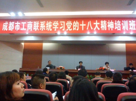為學(xué)習(xí)貫徹好黨的十八大精神,努力開創(chuàng)全市工商聯(lián)工作新局面,11月26日至30日,由成都市工商聯(lián)舉辦的“成都市工商聯(lián)系統(tǒng)學(xué)習(xí)黨的十八大精神培訓(xùn)班”在市委黨校舉行。公司董事長簡興福帶隊參加了此次培訓(xùn)。