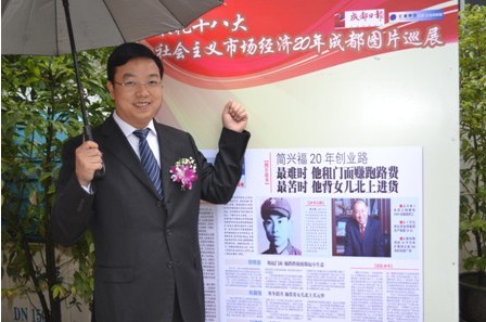 11月5日,由成都市經(jīng)信委、成都工商聯(lián)和《成都日?qǐng)?bào)》報(bào)社主辦的“禮獻(xiàn)十八大 社會(huì)市場(chǎng)經(jīng)濟(jì)20年圖片巡回展”在《成都日?qǐng)?bào)》報(bào)社拉開了帷幕。此次巡回展為期15天,共分為3個(gè)板塊:創(chuàng)業(yè)故事、圖表說明20年、20年圖片巡回展。