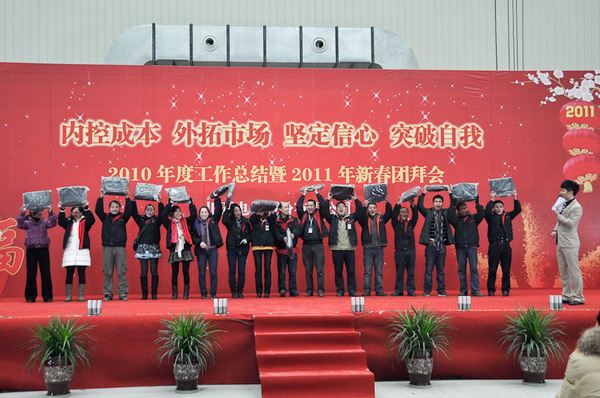 ??? 2011年1月29日上午9:00時(shí),以“內(nèi)控成本、外拓市場(chǎng)、堅(jiān)定信心、突破自我”為主題的“2010年度工作總結(jié)暨2011新春團(tuán)拜會(huì)”隆重拉開(kāi)序幕。集團(tuán)領(lǐng)導(dǎo)、兄弟單位來(lái)賓、全體員工及家屬代表們等千余人歡聚一堂,共迎新春。