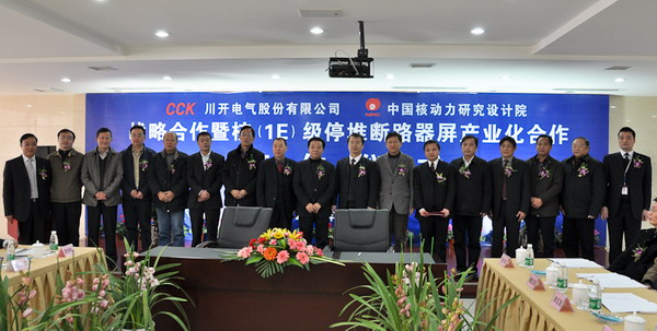 ??? 1月22日上午,“川開電氣股份有限公司——中國核動力院研究設(shè)計院戰(zhàn)略合作暨核(1E)級停堆斷路器屏產(chǎn)業(yè)化合作簽約儀式”在我公司隆重舉行。
