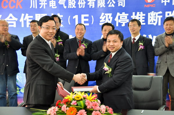 ??? 核(1E)級停堆斷路器屏是核電站內(nèi)最核心的控制部分。我公司與核動力院的合作,標(biāo)志著核(1E)級停堆斷路器屏將步入國產(chǎn)化的時代。在核電產(chǎn)品的研發(fā)、產(chǎn)業(yè)化等方面,我公司將與核動力院建立長期戰(zhàn)略合作關(guān)系,將雙方在研究和產(chǎn)業(yè)化的優(yōu)勢強強結(jié)合,這是一項互利共贏的重大舉措,同時也是四川省裝備制造業(yè)發(fā)展規(guī)劃及成都市、雙流縣“打造千億級新能源產(chǎn)業(yè)集群”的總體布局,對加快國家核電設(shè)備國產(chǎn)化進程必將產(chǎn)生積極的推動作用。